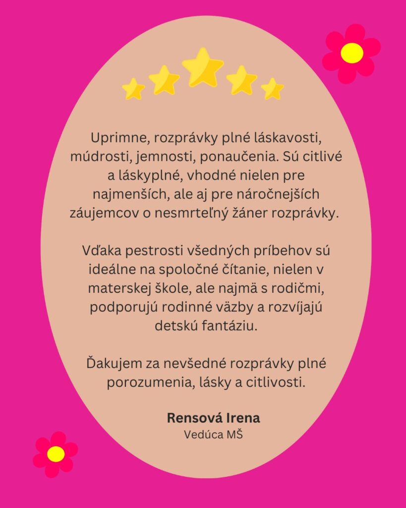 Verím, že tieto rozprávky sú omnoho viac než len príbehy na dobrú noc. Sú to sprievodcovia na ceste k šťastnému detstvu, mosty medzi svetom detí a dospelých, a predovšetkým nástroje pre vytváranie hlbokého puta medzi rodičom a dieťaťom.
