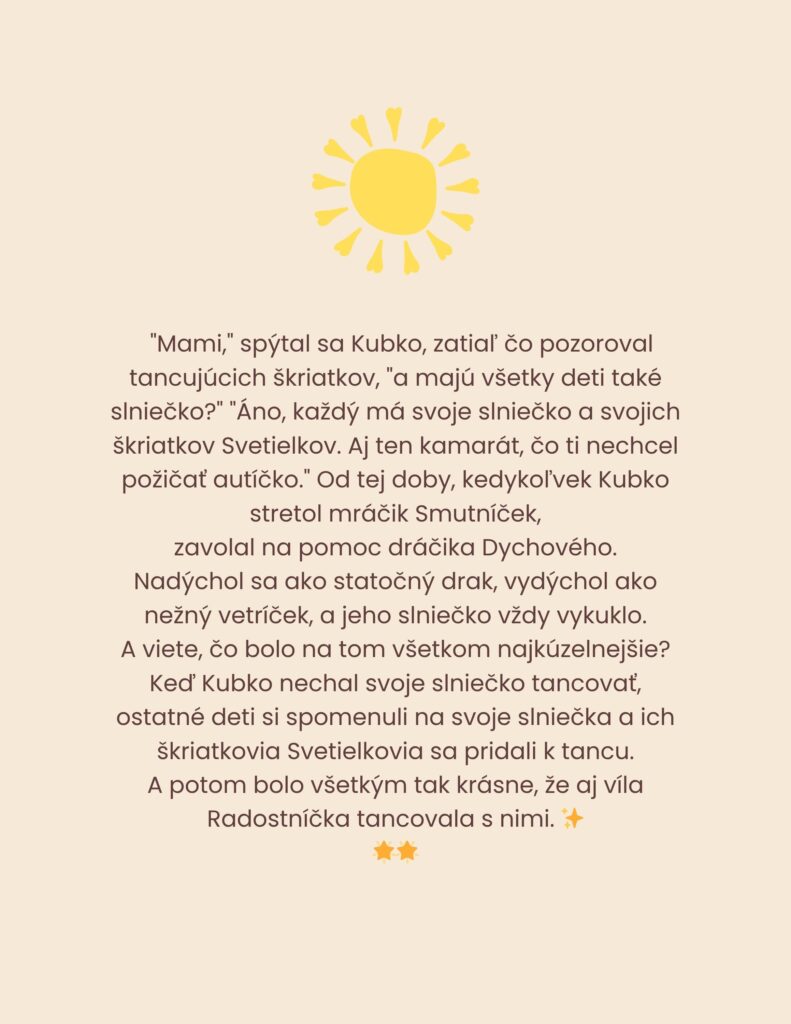 Tvorila som ich s láskou a s inšpiráciou od Jaroslava Duška – pretože jeho učenie o bytí TERAZ, o prijatí, láskavosti a prítomnosti je presne to, čo dnešné deti (a rodičia) potrebujú.