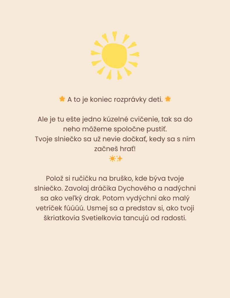 🎁 BONUS 3: CVIČENIA A AKTIVITY v hodnote 20 Euro – Dýchacie relaxácie, pohybové hry, vďačnosť, jemná meditácia pre deti a ďalšie praktiky z každej rozprávky.